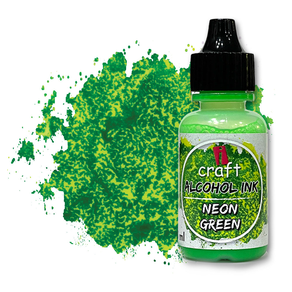 - iCraft Neon Alcohol Ink is a highly-pigmented, acid-free, and fast-drying ink that works on nonporous surfaces such as glass, ceramic, metal, plastic, and more.